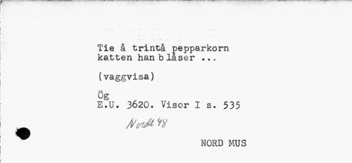 //// Tie å trintå pepparkorn katten han b låser ... //// (vaggvisa) //// \ _ / //// Ög //// E.U. 3620. Visor I s. 535 //// /l/trufr ft //// NORD MUS ////