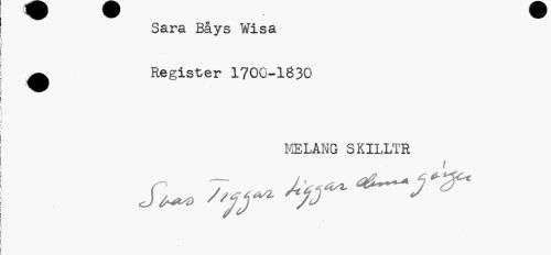 //// Sara Båys Wisa //// •Register 1700-1830 //// MELÅNG SKILLTR //// C T r //// J^ ^^ fö ////