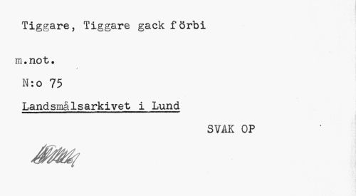 //// Tiggare, Tiggare gäck förbi m.not • //// s //// N:o 75 //// Landsmålsarkivet i Lund //// SVÅK OP ////