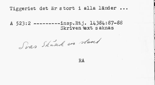 //// Tiggeriet det är s tort i alla länder //// A 523:2 ~---—insp.Rtj. 143Ö4:Ö7-ÖÖ //// Skriven text s aknas //// • i //// i 1 i //// RÅ ////