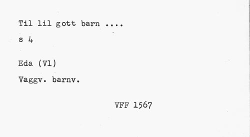 //// Til lil gott barn ... s 4 //// Eda (VI) Vaggv. barn v. //// VFF 1567 ////