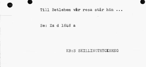 //// Till Betlehem vår resa står hän ... Se: Zz d 1Ö4Ö a //// KB:S SKILLINGTRYCISREG ////