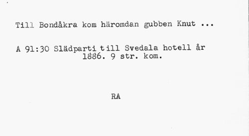 //// I //// Till Bondåkra kom häromdan gubben Knut ..• //// A 91:30 Slädparti till Svedala hotell år //// 1ÖÖ6. 9 str. kom. //// RA ////
