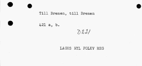//// Till Bremen, till Bremen 9 421 a, b. //// LAGUS NYL FOLK V REG ////