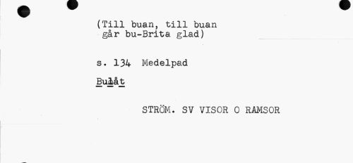 //// (Till buan, till buan går bu-Brita glad) //// s. 134 Medelpad //// BuMt //// STRÖM. SV VISOR 0 RAMSOR ////