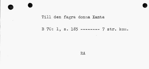 //// Till den fagra donna Xanta //// » //// B 70: 1, s. 1Ö5---7 str. kom. //// f //// RA ////
