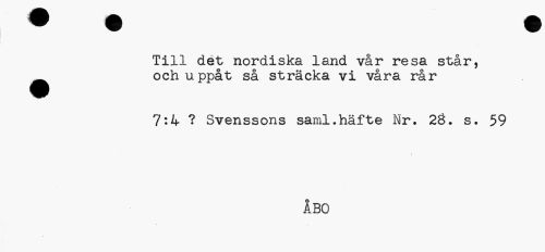 //// Till det nordiska land vår resa står, och uppåt så sträcka vi våra rår //// 7:4 ? Svenssons saml.häfte Nr. 28. s. 59 //// p //// ÅBO ////