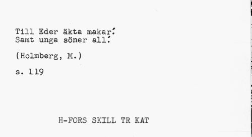 //// Till Eder äkta makar? Samt unga söner allT //// (Holmberg, M.) //// ¦ //// s. 119 I //// 1 //// I //// H-FORS SKILL TR KAT ////
