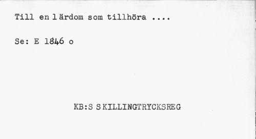 //// Till en 1 ärdom som tillhöra, • • • • I //// » //// Se: E 1846 o //// KB:S SKILLINGTRYCKSREG //// i ////