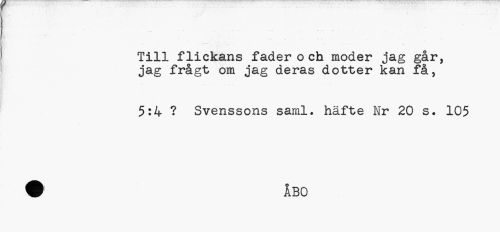 //// Till flickans fader o ch moder jag går, jag frågt om jag deras dotter kan få, //// 5:4 ? Svenssons saml. häfte Nr 20 s. 105 ////