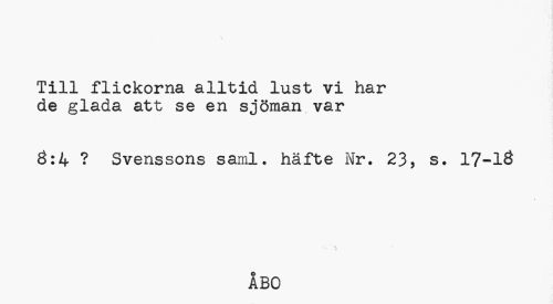 //// Till flickorna alltid lust vi har de glada att se en sjöman var //// 8:4 ? Svenssons saml. häfte Nr. 23, s. 17-18 //// i //// ÅBO ////