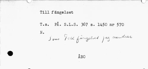 //// Till fängelset //// T.s. PÅ. S.L.S. 367 s. 1450 nr 570 N. //// ® ÅBO ////
