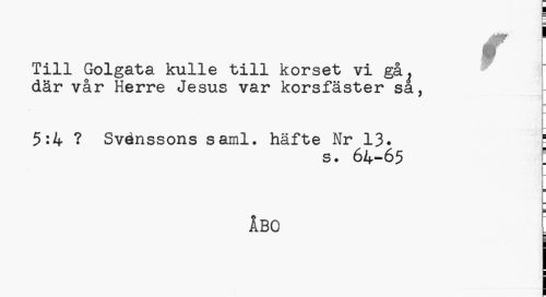//// F //// m 1 m //// Till Golgata kulle till korset vi gå^ där vår Herre Jesus var korsfäster sa, //// 5:4 ? Svénssons saml. häfte Nr 13- j //// s. 64-65 : //// ÅBO //// ¦ ////