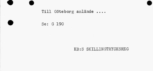 //// Till Göteborg anlände ... W Se: G 190 //// KB:S SKILLINGTRYCKSREG ////