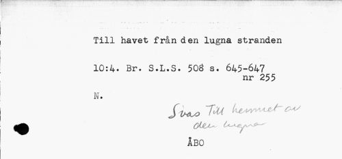 //// Till havet från den lugna stranden //// 10:4. Br. S.L.S. 508 s. 645-647 //// nr 255 //// N. //// j^fe (fa.A. U-^-ey.*- - //// ÅBO //// é ////