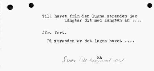 //// VB V ^^^ //// Till havet från den lugna stranden jag //// längtar dit med längtan än ... //// Jfr. fort. //// På s tranden av det lugna havet ... //// Sv&v ! CU ryv^-W1 ^ ty ////