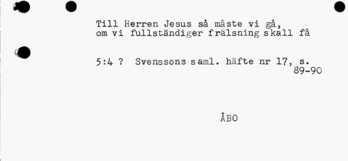 //// Till Herren Jesus så måste vi gå, om vi fullständiger frälsning skall få //// ^ 5:4 ? Svenssons saml. häfte nr 17, s. //// 89-90 //// ÅBO ////
