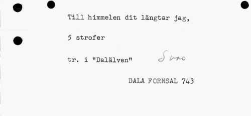 //// Till himmelen dit längtar jag, ^ 5 strofer //// tr. i "Dalälven" J //// DALA FORNS AL 743 ////