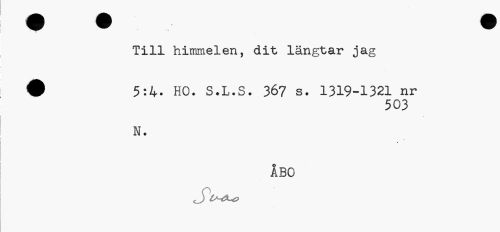 //// Till himmelen, dit längtar jag # 5:4. HO. S.L.S. 367 s. 1319-1321 nr //// 503 //// N. //// s //// ÅBO //// J ////