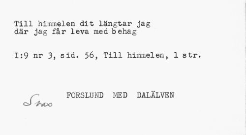 //// Till himmelen dit längtar jag där jag får leva med behag //// 1:9 nr 3, sid. 56, Till himmelen, 1 str. //// FORSLUND MED DALÄLVEN I //// cJ faoo ////