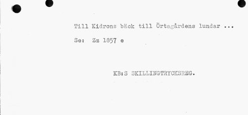 //// Till Kidrons bäck till Örtagårdens lundar ?.• Se: Zz 1357 e //// KB:3 SKILLINGTRYCKSREG. ////