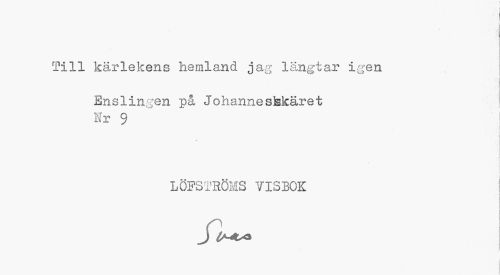 //// ! //// i i //// Till kärlekens hemland jag längtar igen //// Enslingen på Johannestekaret Kr 9 //// t //// LÖFSTRÖHS YISJ30K j //// j //// i ////