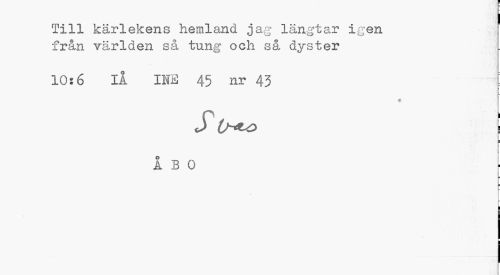 //// I //// Till kärlekens hemland jag längtar igen från världen så tung och så dyster //// 10:6 ii IHE 45 nr 43 //// S V^LO \ //// I B 0 ////