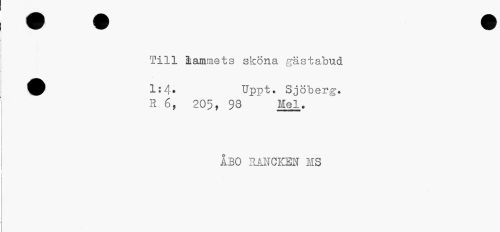 //// Till lammets sköna gästabud //// 1:4» Upp t. Sjöberg. //// R 6, 205, 93 * Mel. //// ÅBO RÅNCKEN MS ////