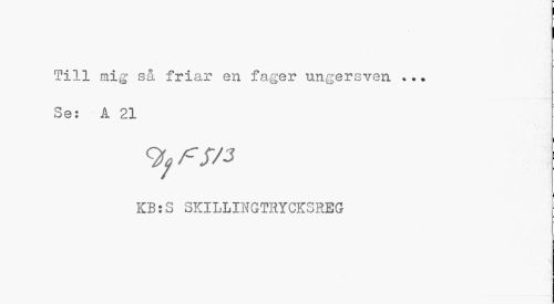 //// I //// Till mig så friar en fager ungersven ... Se: 1 21 //// KB:S SKILLINGTRYCKSREG //// J ////
