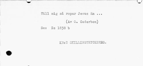 //// I //// Till mig så ropar Jesus än *«. //// f //// (Av 0. Cederbom) Se: Zz 1338 b //// KB:3 SKILLINGTRYCKSREG. //// M ¦ / //// W ¦/ ////