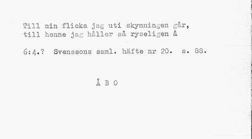 //// Till min flicka jag uti skymningen går, till henne jag håller så ryseligen å //// 6:4»? Svenssons saml. häfte nr 20. s. 36. //// ÅBO //// h i ////
