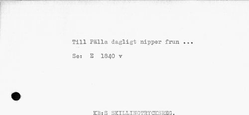 //// Till Palla dagligt nipper frun ..? Se: E 1340 v //// KB 2S SKILLINGTRYCKSREG. ////