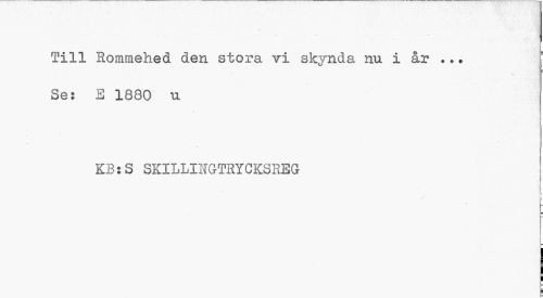 //// Till Rommehed den stora vi skynda nu i år ..• Se: S 1880 u //// KB: S SKILLINGTRYCKSREG- //// I j ////