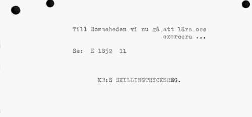 //// Till Rommeheden vi nu gå att lära oss //// exercera ... //// Se: E 1852 11 //// KB:S SKILLINGTRYCKSREG. ////