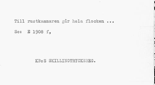 //// t //// I //// Till //// tkammaren gar hela flocken. ... j //// Se: E 1908 f, //// I //// - //// | //// i i //// KB:S SKILLINGTRYCKSREG. ////