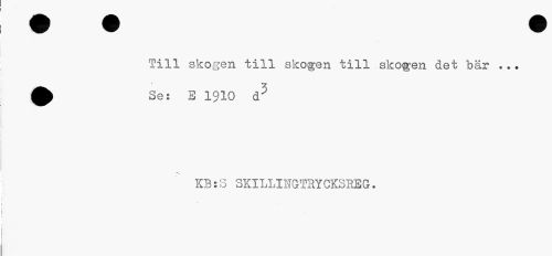 //// Till skogen till skogen till skog-en det bär ... //// ^ Se: E 1910 d5 //// KB:3 SKILLINGTRYCKSREG. ////