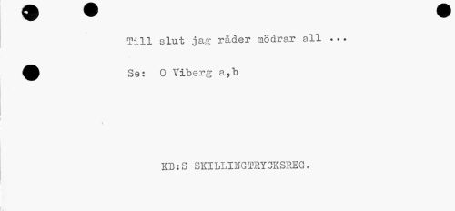 //// Till slut jag råder mödrar all ... ^ Se: O Viberg a,b //// KB:S SKILLINGTRYCKSREG. ////