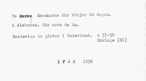 //// I //// Te Ssu&o: Sneckarns där börjar dä dagas, //// ! //// i Alehanen, där sova- de än» ! //// Smädevisa om gårdar i Underland. s 37-38 //// Rävinge //// (Hl) //// I!5I 2230 //// i I //// ; ( \ :0, . •¦ 'v. ////