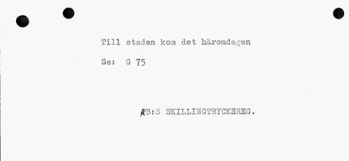 //// Till staden kom det häromdagen Se: G 75 //// j£B:S SKILLINGTRYCKSREG. ////