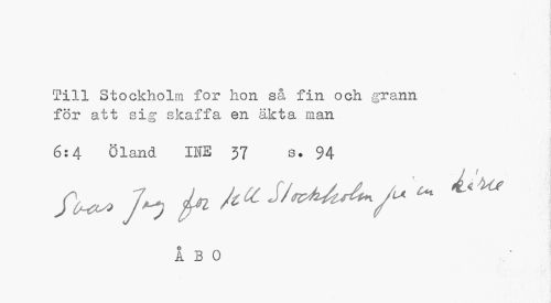 //// Till Stockholm for hon så fin och grann för att sig skaffa en äkta man //// 6:4 Öland EJE 57 s. 94 //// ÅBO ////