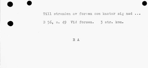 //// Till stranden av forsen som kastar sig ned ... //// ^^ B 56, s. 49 Vid forsen. 3 str. kom. //// R A ////