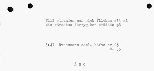 //// Till stranden ner gick flickan att gå sin kärastes fartyg hon skådade på //// 5:4? Svenssons saml. häfte nr 2 3 //// s. 55 //// ÅBO ////
