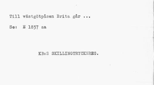 //// S "W //// Till västgötpåsen Brita går ... Se: E 1837 aa //// KB:S SKILLINGTRYCKSREG. //// « //// jft ////