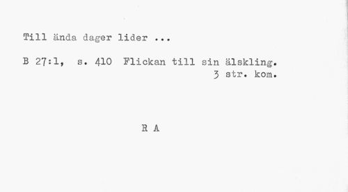 //// I //// Till ända dager lider ... //// B 27:1, s. 410 Flickan till sin älskling. //// 3 str. kon. //// R A ////