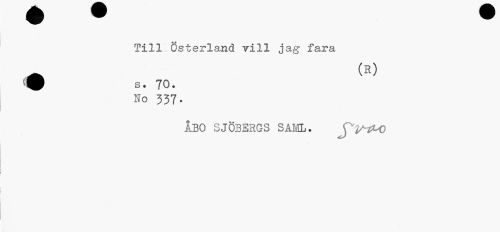 //// Till Österland skall jag fara ; //// <• 70 (R) //// Ho 337• //// ÅBO SJÖBERGS SAML. f V^O ////
