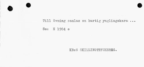 //// Till övning samlas en hurtig ynglingskara ... //// 4 » //// Se: E 1904 e //// KB:S SKILLINGTRYCKSREG. ////