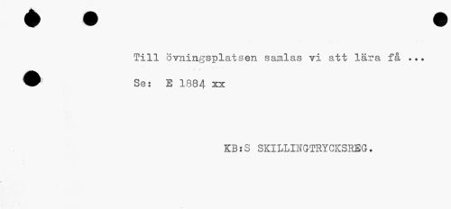 //// Till övningsplatsen samlas vi att lära få ... //// Se: E 1884 xx //// KB:S SKILLINGTRYCKSREG. ////