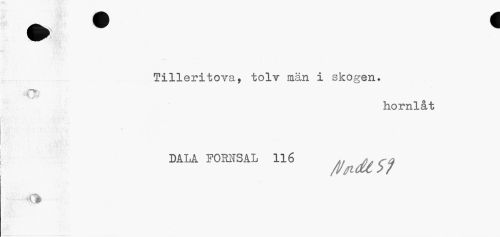 //// Tilleritova, tolv män i skogen. //// t //// "KM //// hornlåt //// '• ' • ; • 4 //// DALA POMSÅL 116 , , ,, ^ //// ¦j'rr ...~ —¦¦ ¦¦- • — ////