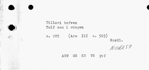 //// Jflk " A //// * : //// ¦ jn f* i . V* //// Tilleri tofven Tolf man i skogen //// s• 285 (Arw III s. 503) //// Ifordl. //// ARW MS KB 73 2:2 ////