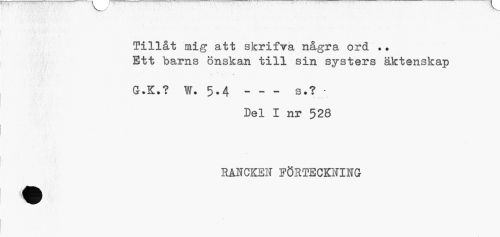 //// TiIlat mig att skrifva några ord .. //// Ett barns önskan till sin systers äktenskap //// G.K.? W. 5.4---s.? • //// Del I nr 528 //// RANCKEN FÖRTECKNING ////